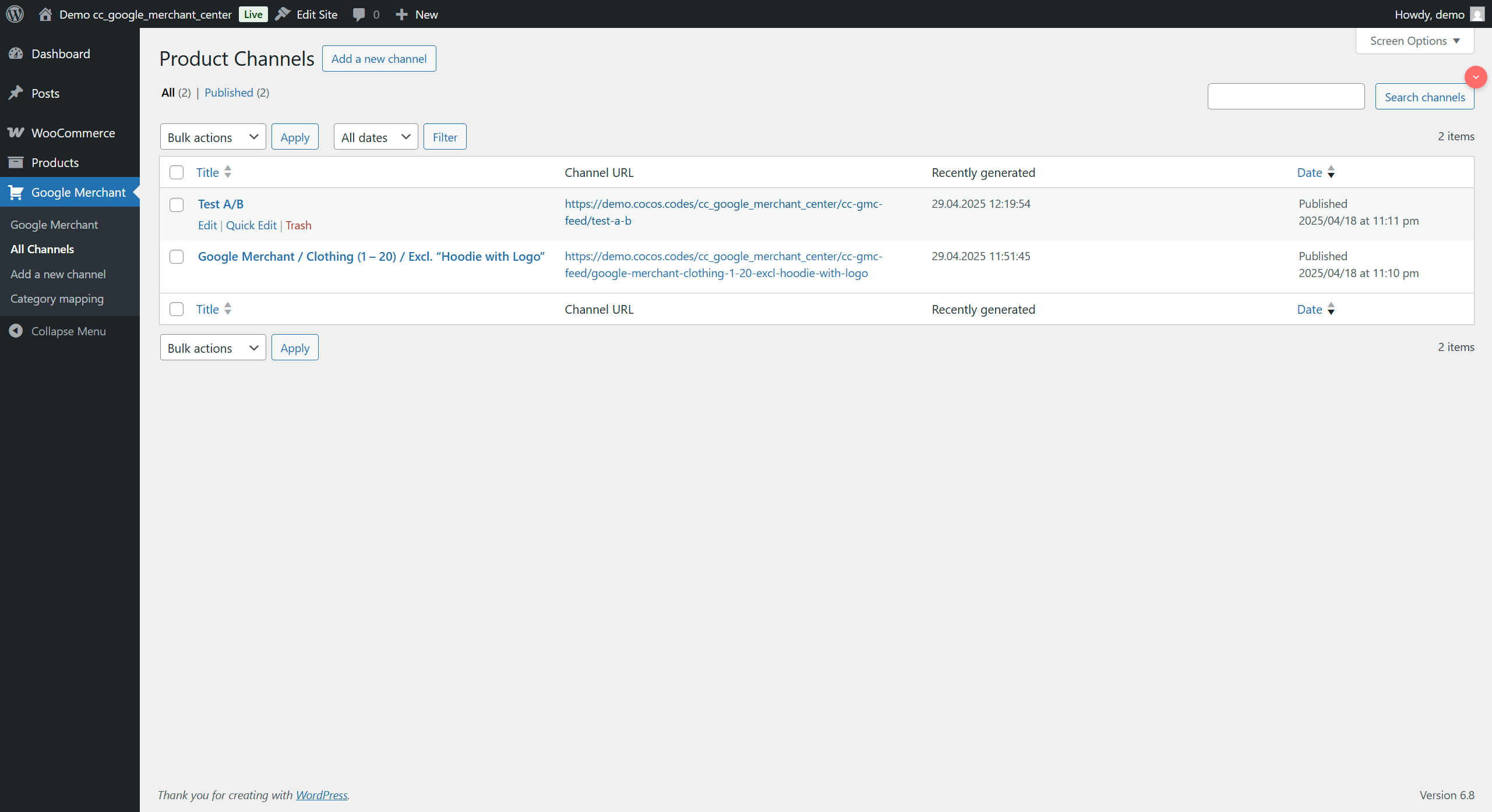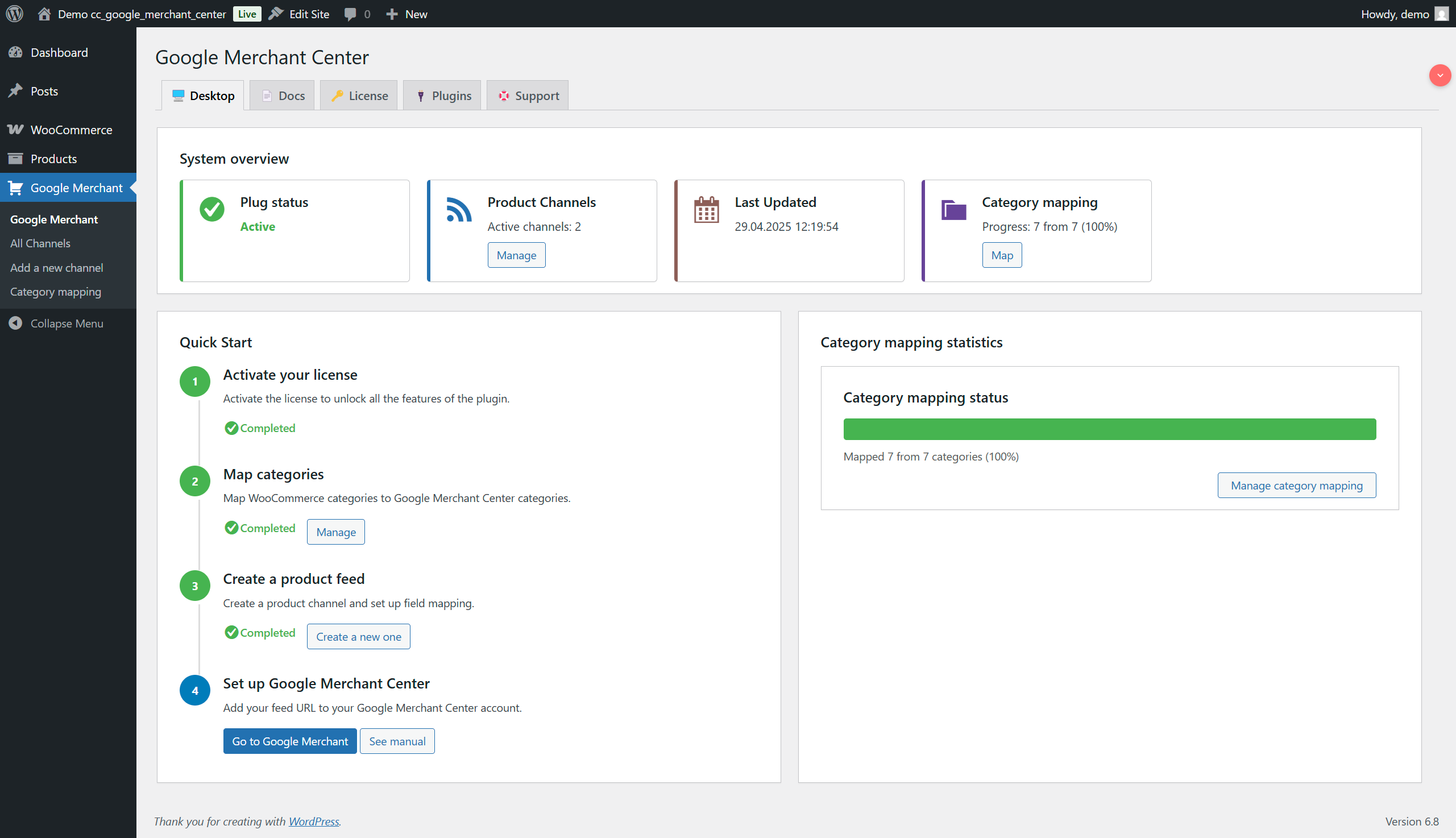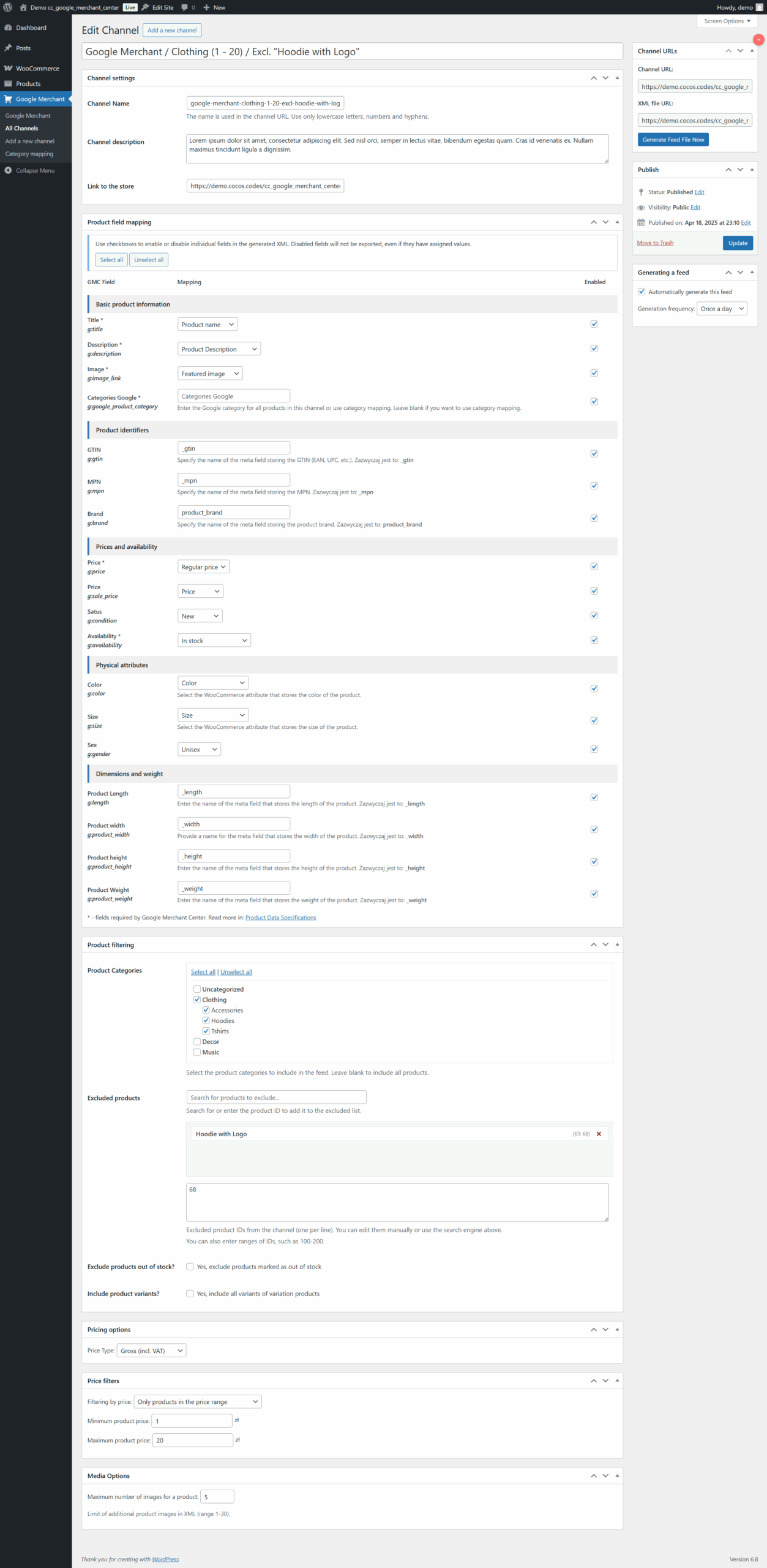 WordPress Google Merchant Center ist ein unentbehrliches Tool für WooCommerce-Shops, die ihre Produkte im Internet effektiv bewerben wollen. Google Shopping. Plug-in CC Google Merchant Center automatisiert die Synchronisierung des Katalogs mit Google und ermöglicht es Ihnen, Ihr Angebot in der Suchmaschine zu präsentieren und Millionen von Kunden zu erreichen. Es bietet die automatische Erstellung von XML-Dateien, die Zuordnung von Kategorien und die Verwaltung von Produktkampagnen, um eine maximale Effizienz Ihrer Google Shopping-Aktivitäten zu gewährleisten.