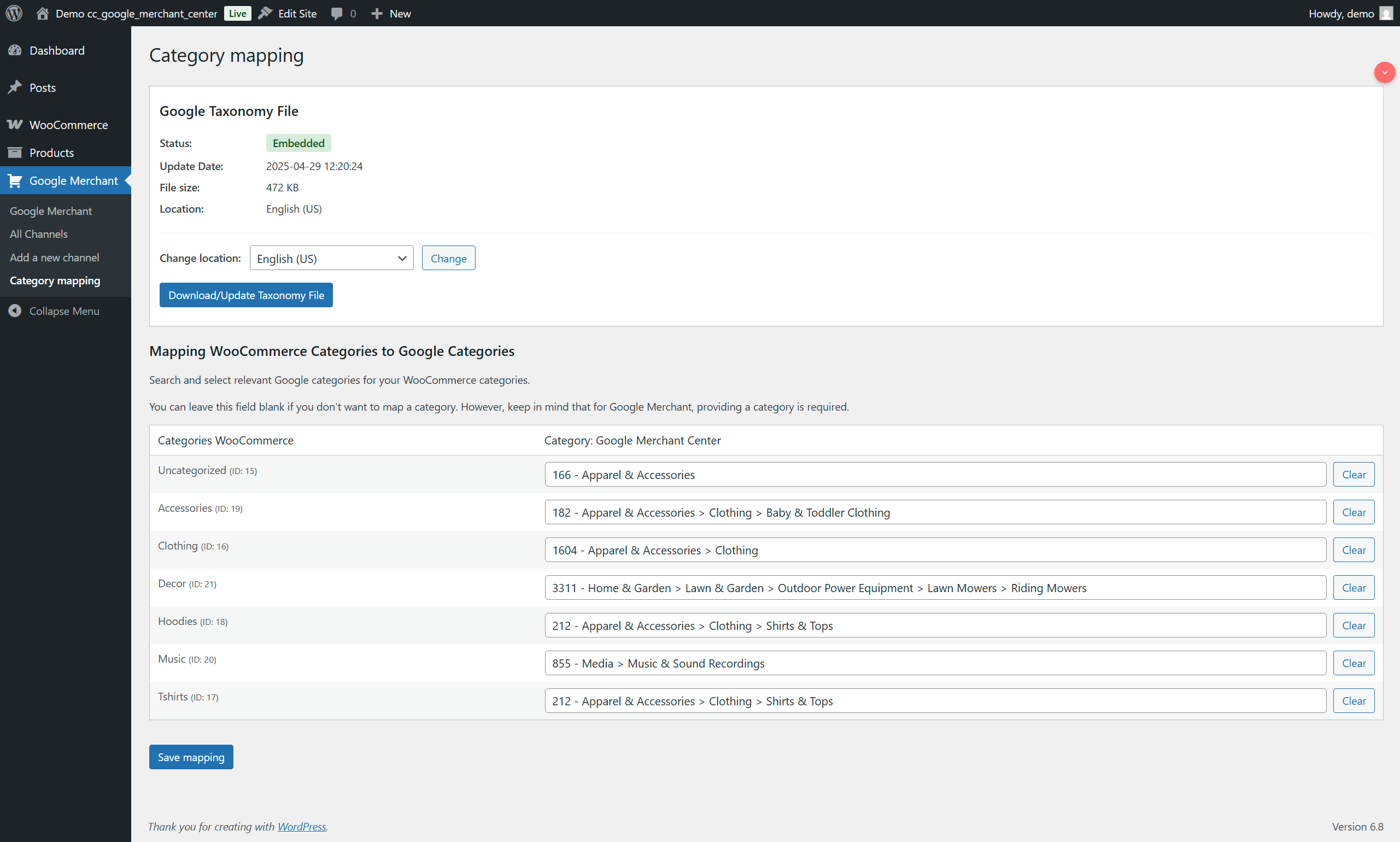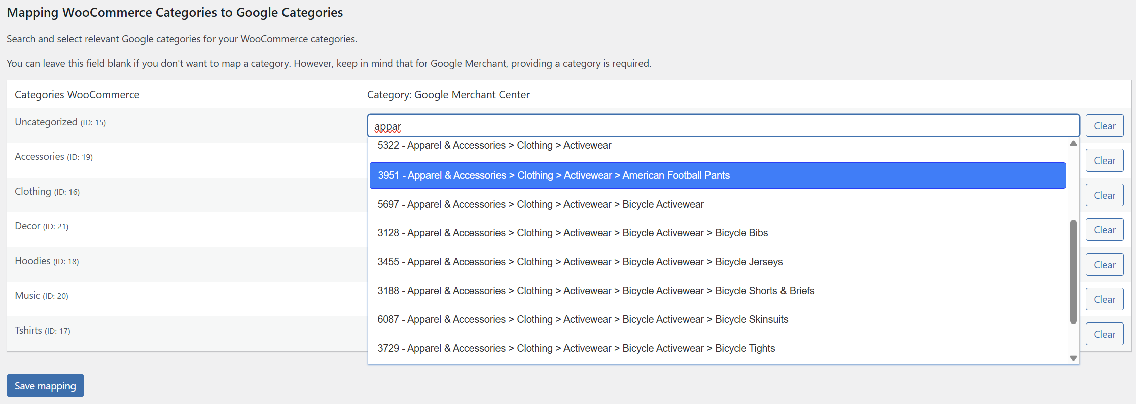 ✅ Kategoriezuordnung - intuitive Zuordnung von WooCommerce-Kategorien zur offiziellen Google-Taxonomie