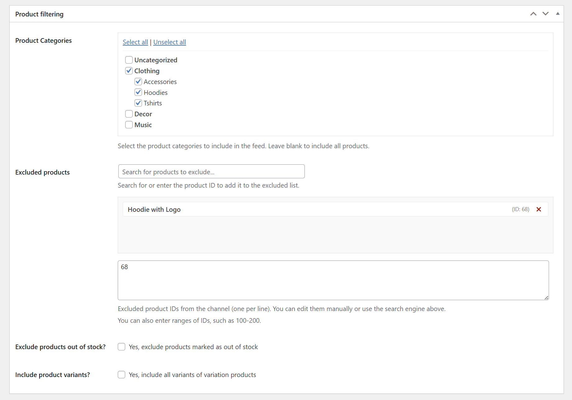 ✅ Ausschluss von Produkten - Möglichkeit, ausgewählte Produkte oder Preisklassen auszulassen