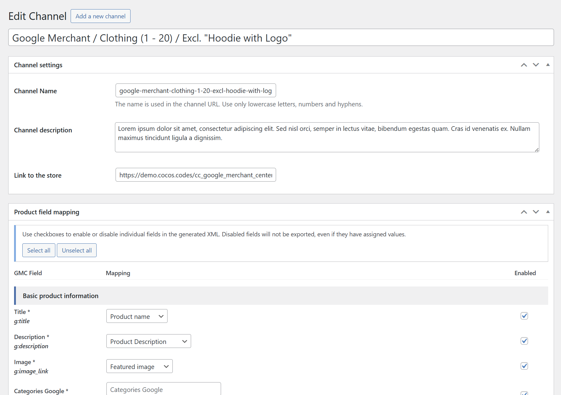 ✅ Mehrere Kanäle - erstellen Sie unterschiedliche Feeds für verschiedene Produktkategorien oder Zielmärkte