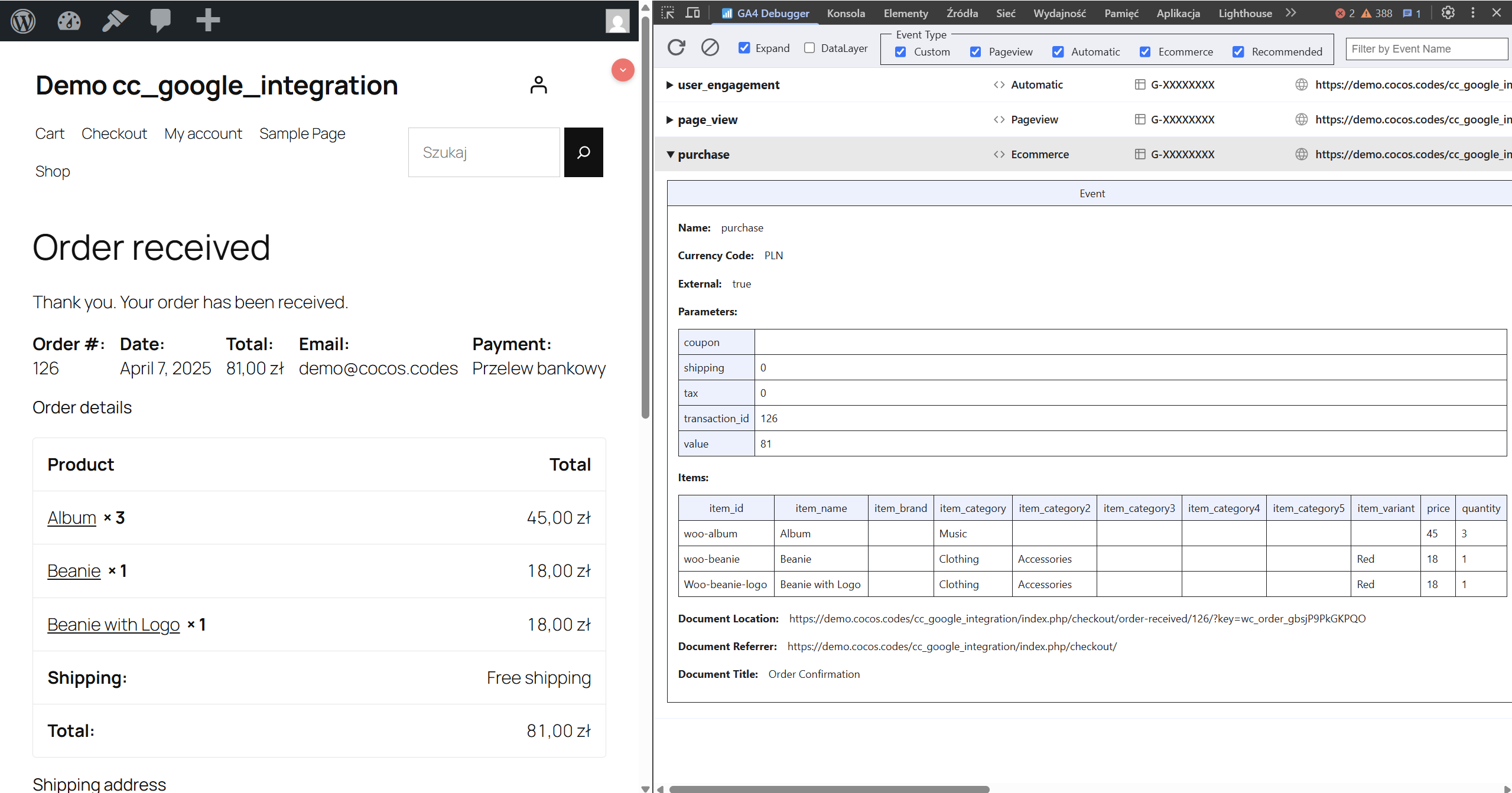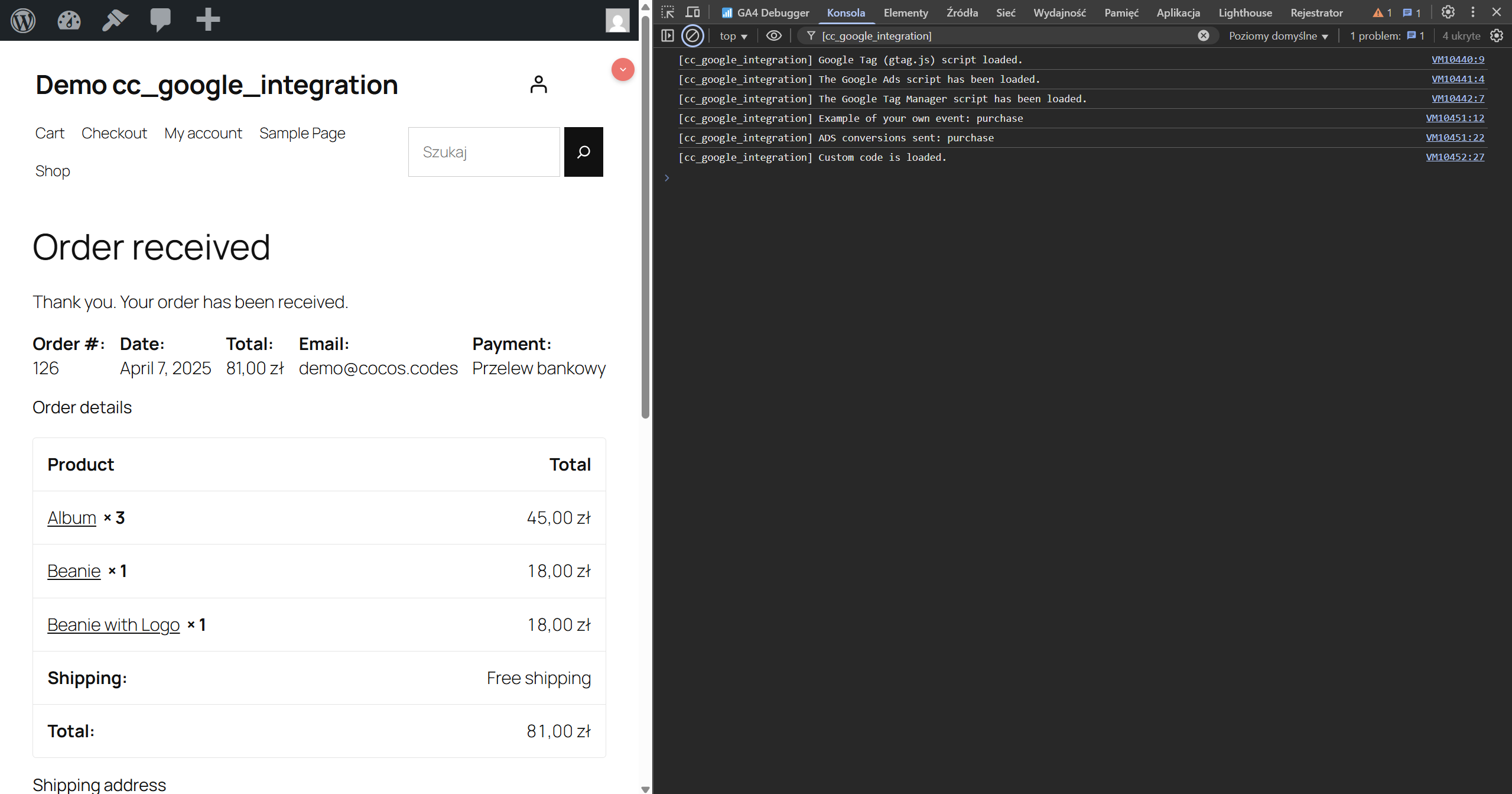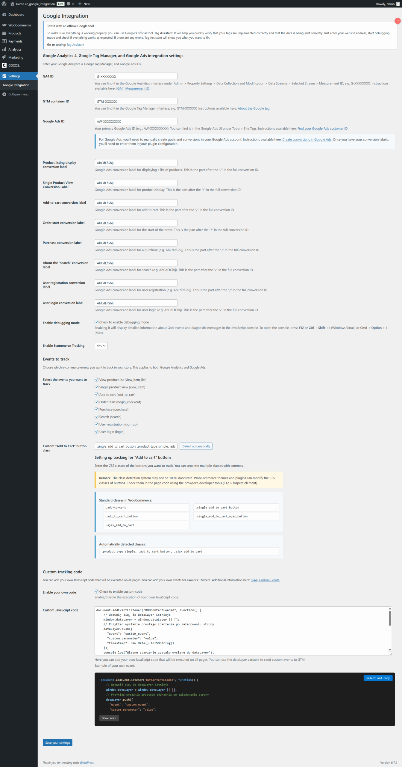 Integración de Google en WordPress es una herramienta indispensable para los comercios WooCommerce. Enchufe CC Integración con Google permite la plena integración con Google Analytics 4, Google Tag Manager y Google Ads, que proporcionan un seguimiento preciso del comportamiento de los clientes y una optimización eficaz de las campañas. El seguimiento automático de los eventos de comercio electrónico, las etiquetas de conversión personalizadas y la detección inteligente de los elementos de la tienda le permiten tomar decisiones comerciales precisas y maximizar las tasas de conversión.